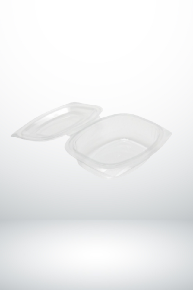 Plastic Food & Salad ContainersOval Salad Bowl 375cc, Hinged Lid, Pet, Transparent